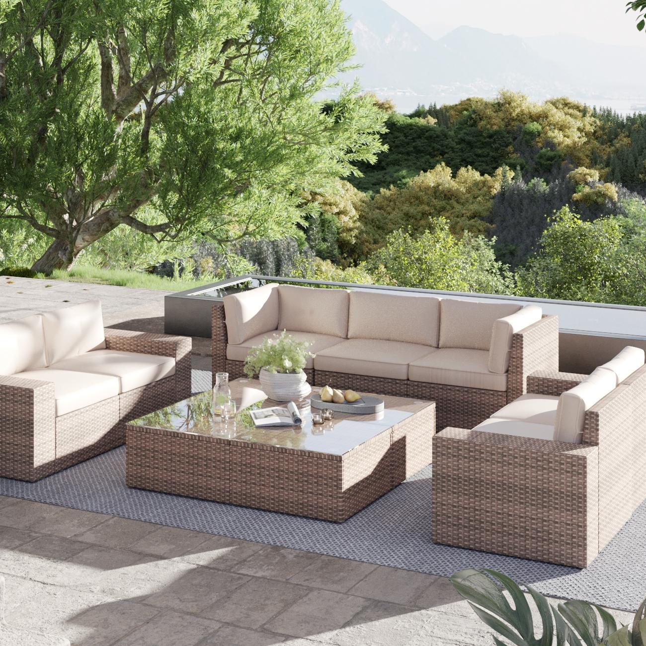Yes, the cushions are made from water-resistant fabric, but we recommend storing them indoors during heavy rain to prolong their lifespan.