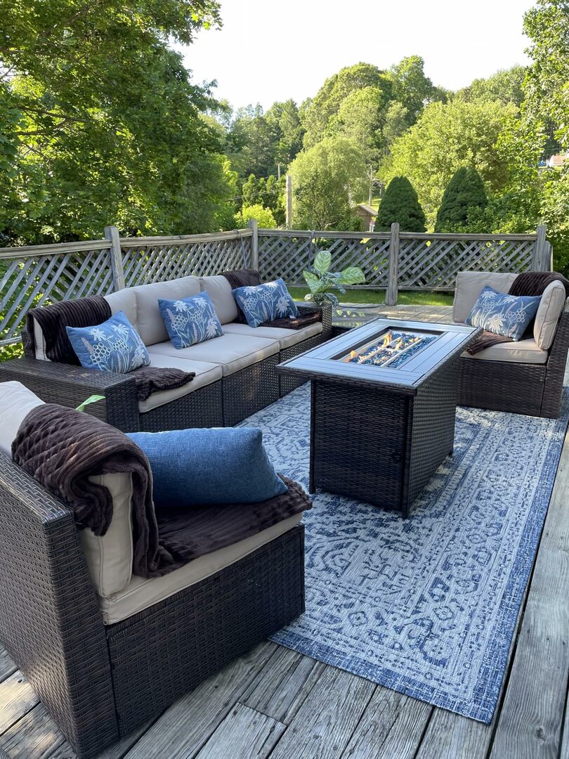 To clean the wicker, simply wipe it down with a damp cloth. For the cushions, removable covers can be spot-cleaned or washed on a gentle cycle.