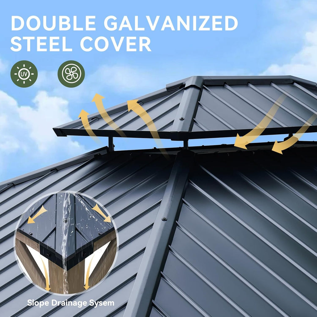 10' x 12' Double Top Cedar Wooden Gazebo