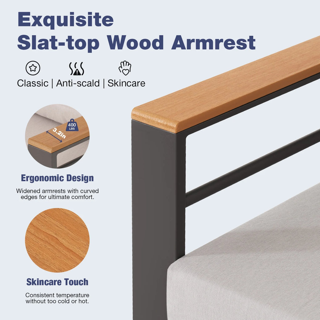 Aluminum Outdoor Patio Furniture Set, 5 Seats Outdoor Sectional with Coffee Table (3-Seater and 2 Single Seats) Light Grey