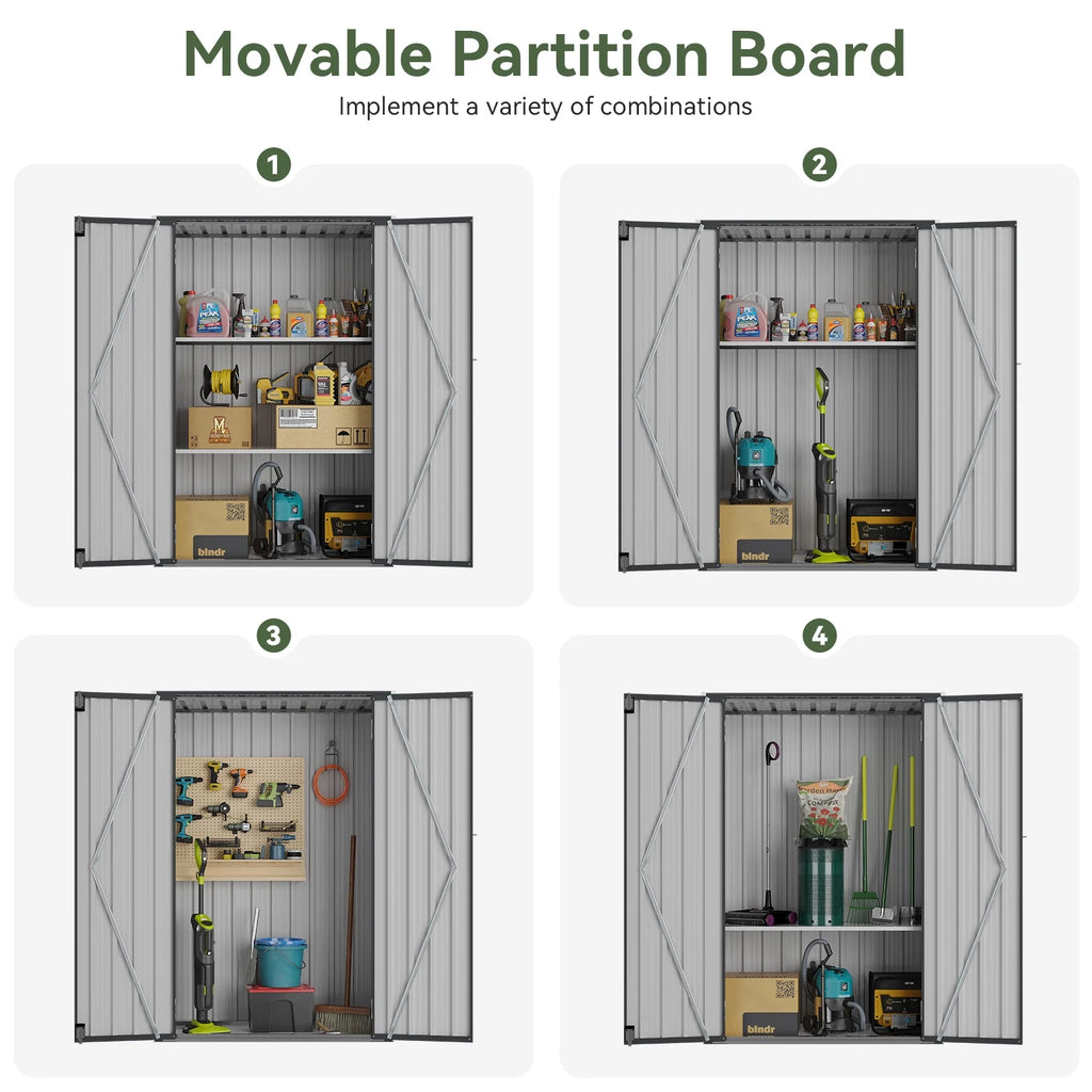 Aoxun 4x1.5 ft. Black Metal Storage Shed with 2 Shelves, Outdoor Waterproof Cabinet