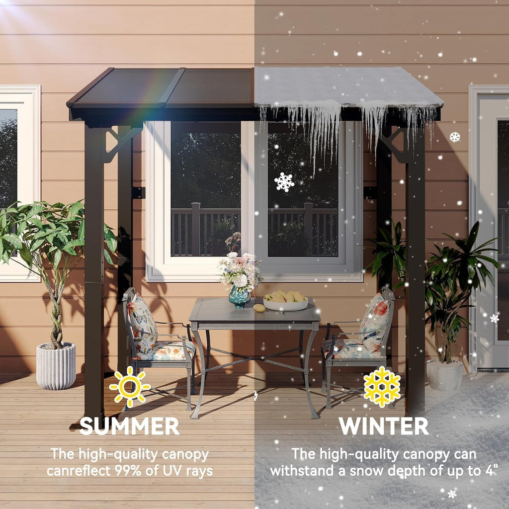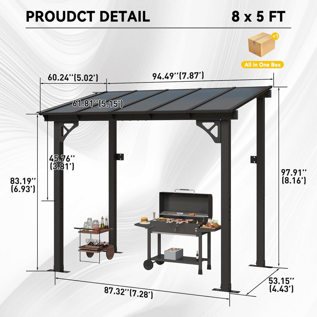 Aoxun 5’x 8’ Premium Gazebo with Aluminum Top Frame & Polycarbonate Panel, Wall Mounted Gazebos Pergola, Outdoor Patio Lean to Gazebo, Awnings with Sloped Roof, for Backyard, Porch, Deck