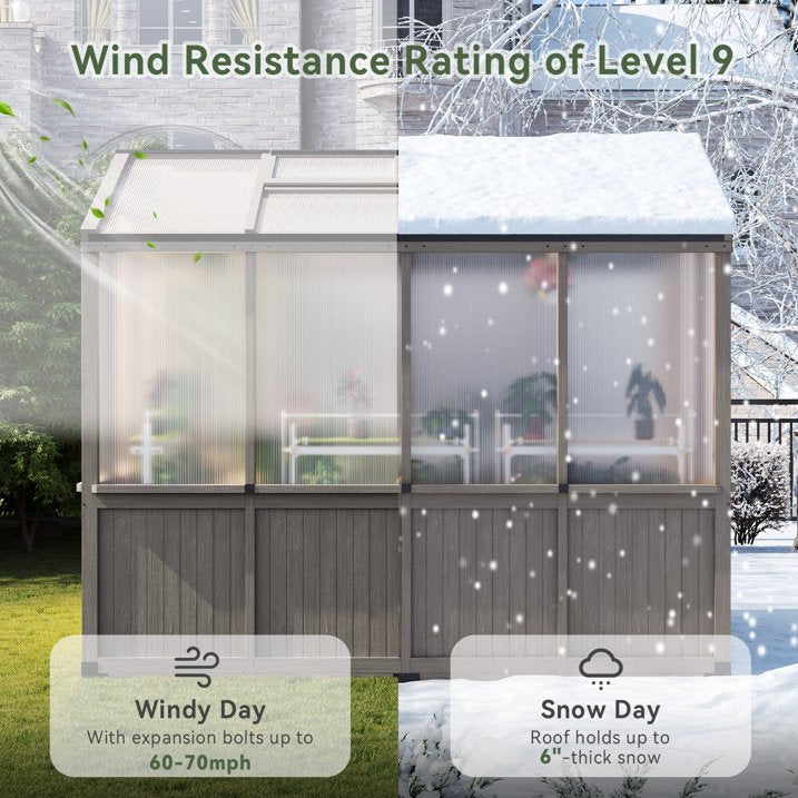 - 【High-quality Cedar Structure, All-year Protection】 This greenhouse is made of naturally rot-resistant cedar wood, with a sturdy wooden frame superior to aluminum alternatives and excellent insulation properties. This highly efficient insulating wood absorbs sunlight during the day and slowly releases heat at night, protecting plants from frost while reducing heating costs. Its robust design can withstand heavy snow loads.