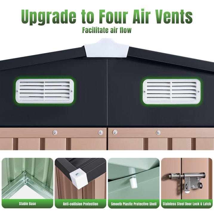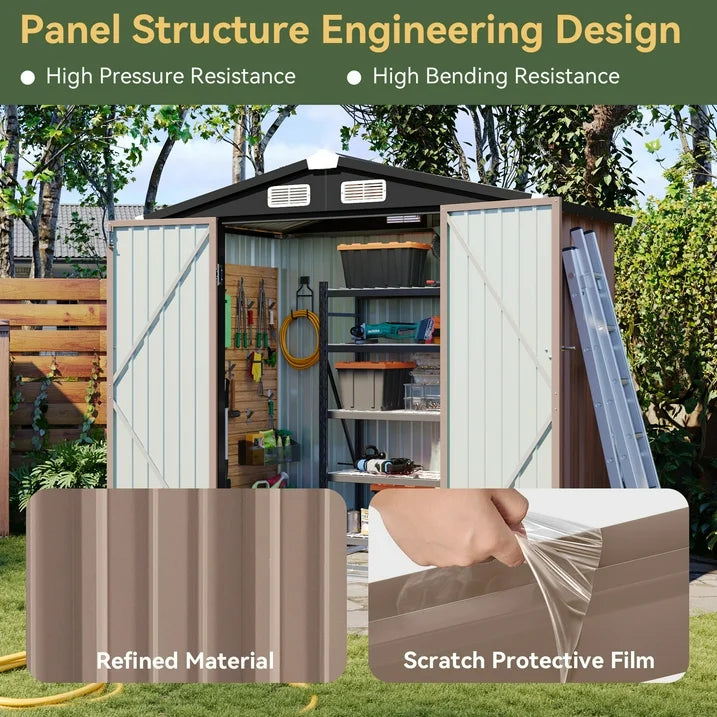Aoxun 6'x4' Outdoor Metal Storage Shed with Lockable Door- Ideal for Tools, Garden Equipment & Bikes, Perfect for Patio Placement(Base Included/Brown)