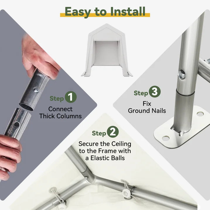 - Quick Tool-Free Assembly: No tools required! Each numbered part connects seamlessly with clear instructions. Set up this carport shelter in minutes, ideal for temporary or semi-permanent storage solutions. Compact yet robust, it’s your go-to hassle-free shelter!