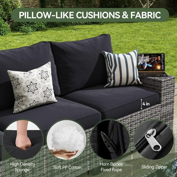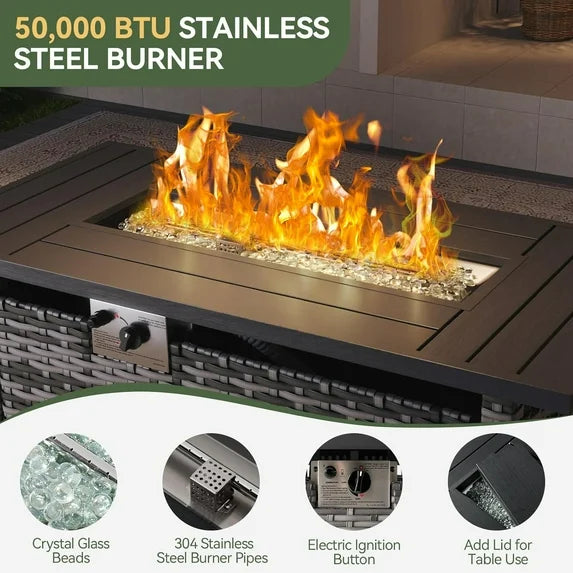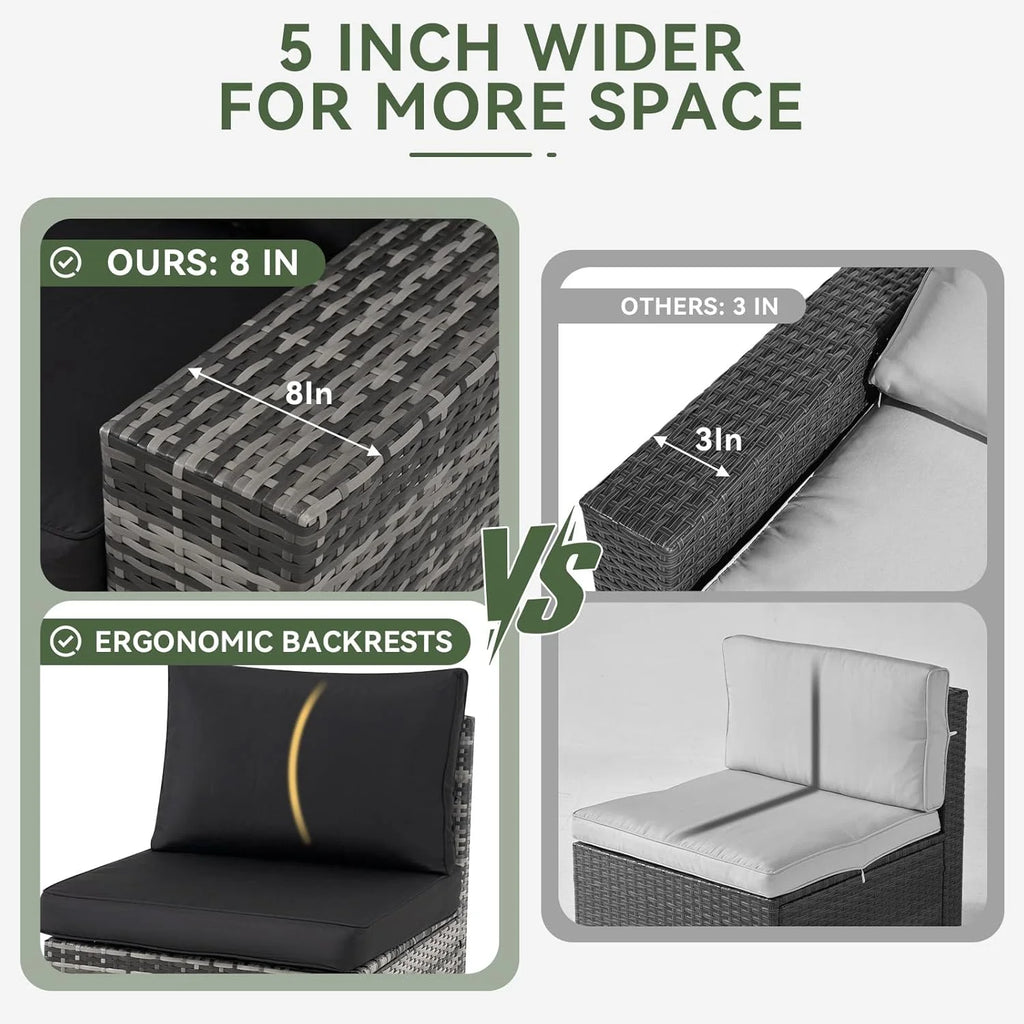 Aoxun 7 Pcs Outdoor Patio Furniture Sets with with 44'' Fire Table, Widen Armrests Wicker Outdoor Sectional for Backyard (Waterproof Cover Include)