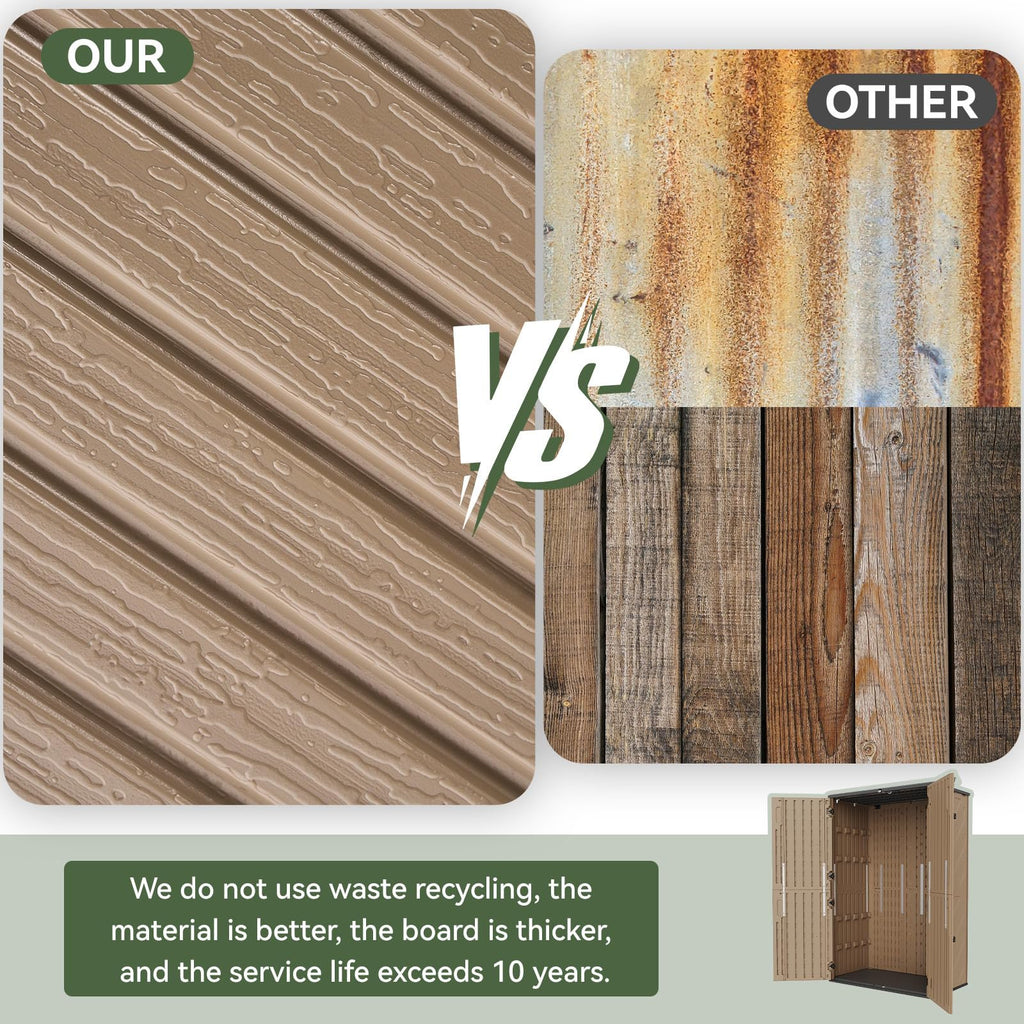 - 【Installation&Delivery】This plastic storage shed has been optimized many times to achieve a simpler installation with fewer screws, which takes only 30-60 minutes for 2-3 people to install. This tool room has three packages, you may receive at different times, thank you for your patience.