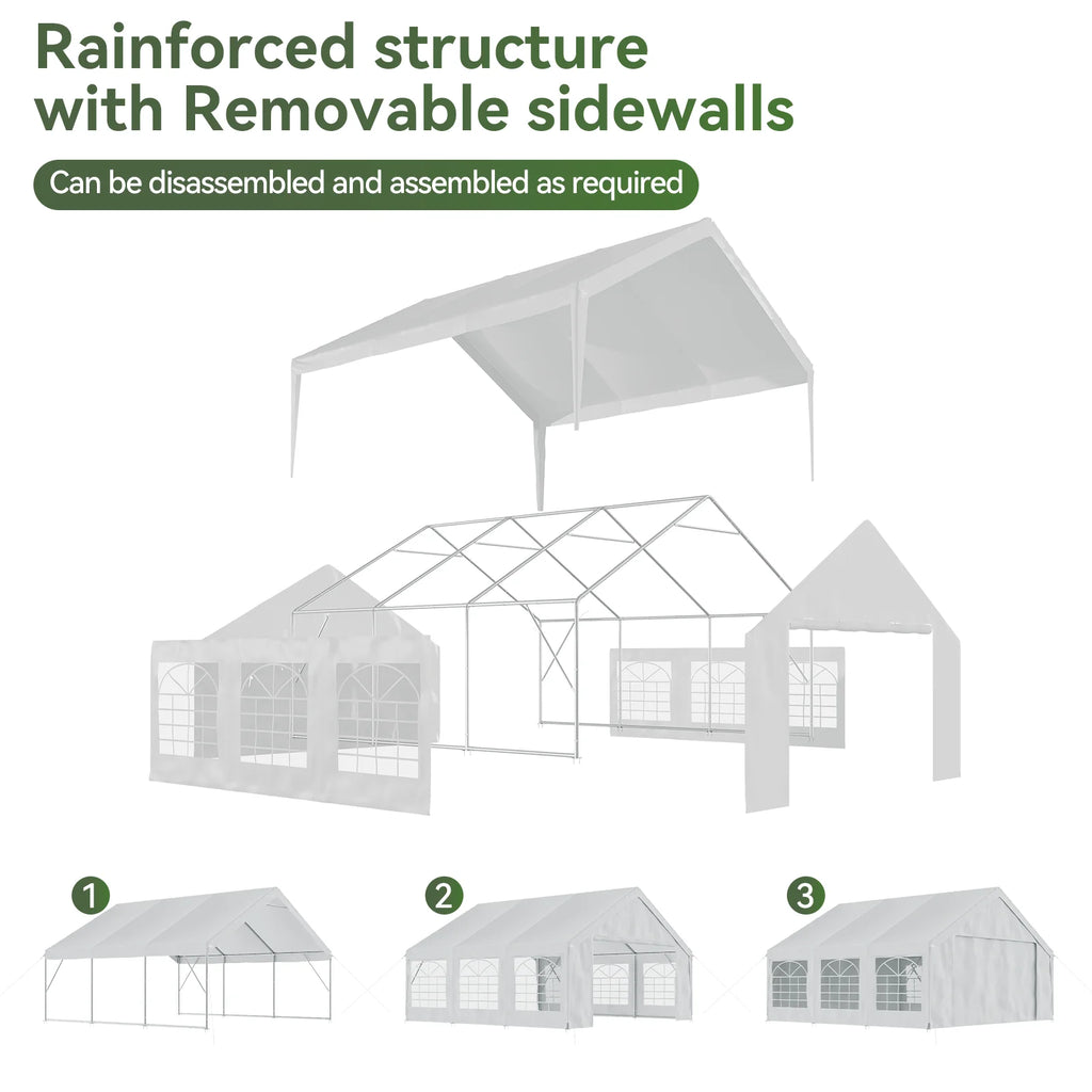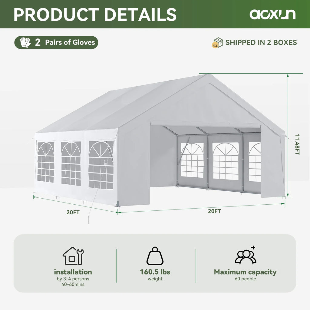 Aoxun Wedding & Event Tent, 20x20 FT White Canopy with Removable Sidewalls, Waterproof Party Tent for Outdoor Gatherings, BBQ, Birthday, Camping