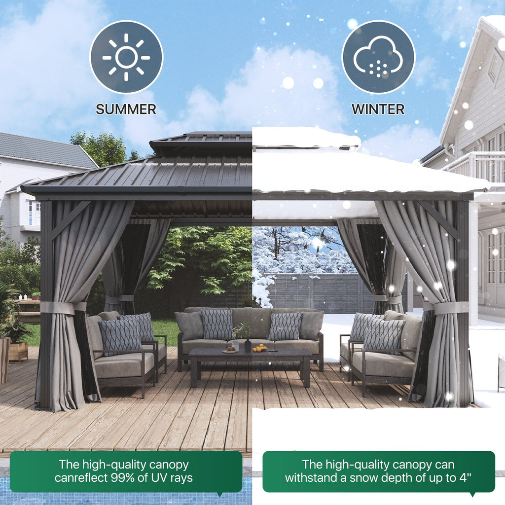 Clouddwell 10' x 14' Gazebo for Patio, Gazebo Pergola with Sloped Roof, Large Wall-Mounted Heavy Duty Awnings, for Deck, Patio and Backyard