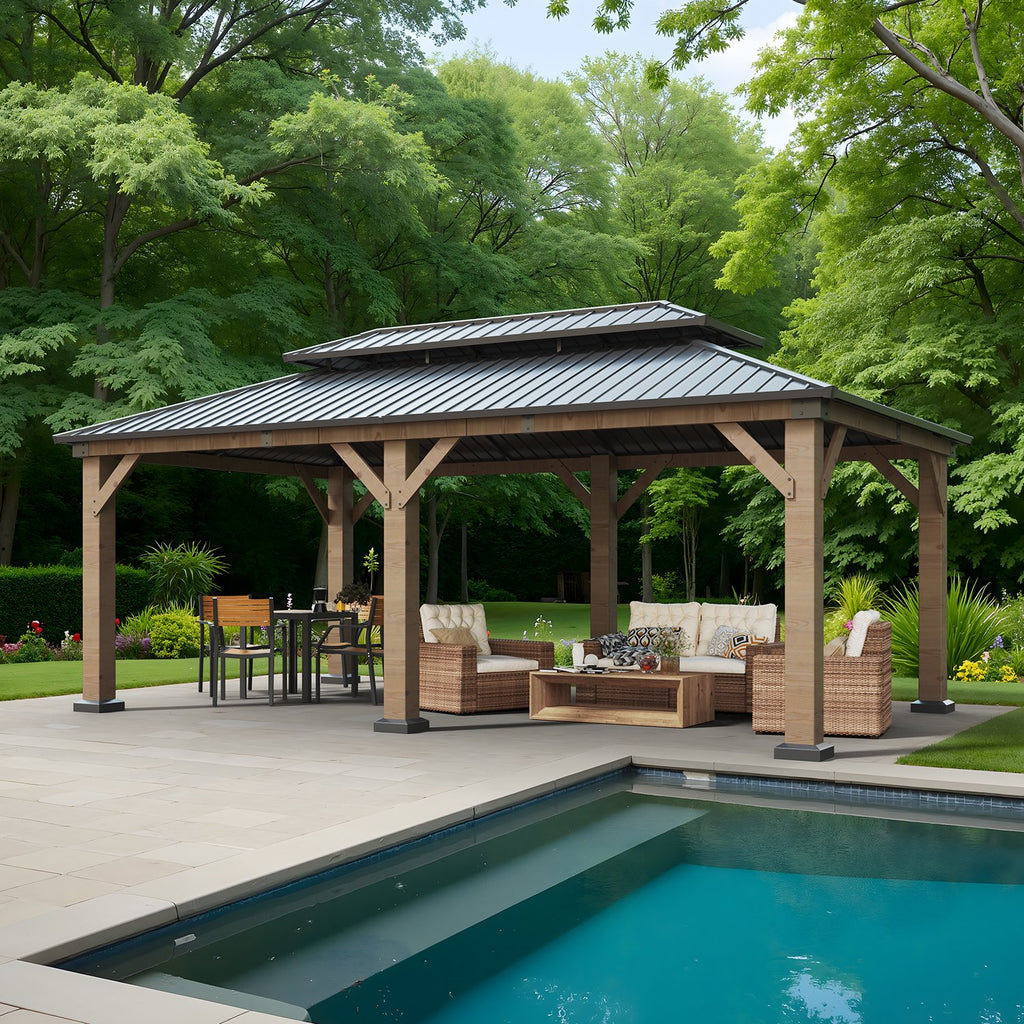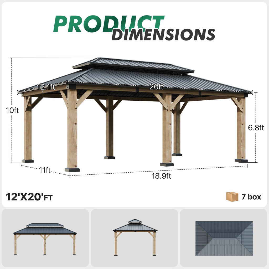 Clouddwell 12*20FT Upgraded Cedar Gazebo,Cedar Hard Roof Gazebo,with Double-Layer Galvanized Steel Roof,Suitable for Backyard,Desk,and Lawn.