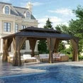 Clouddwell 12'x20' Hardtop Gazebo - Polycarbonate Double Roof with Netting & Curtains for Patio, Garden Sun Protection,Browm