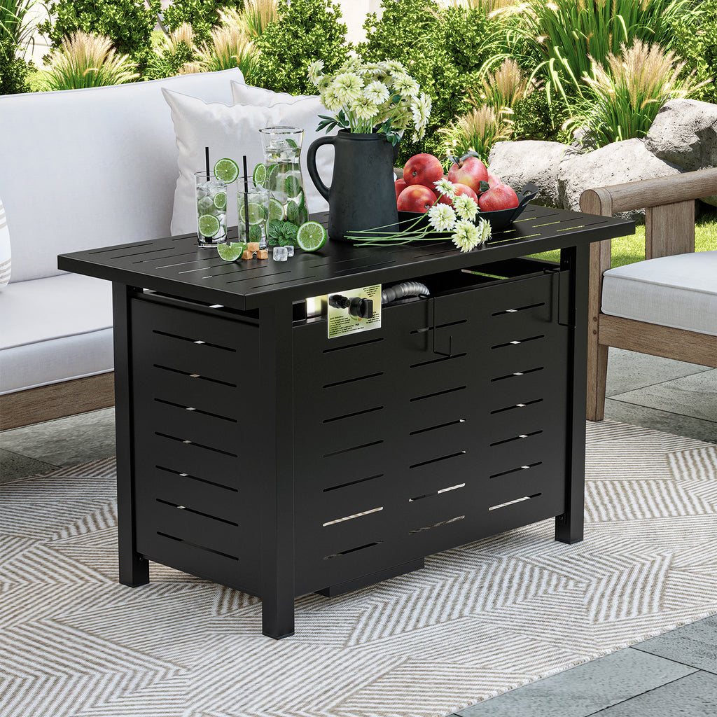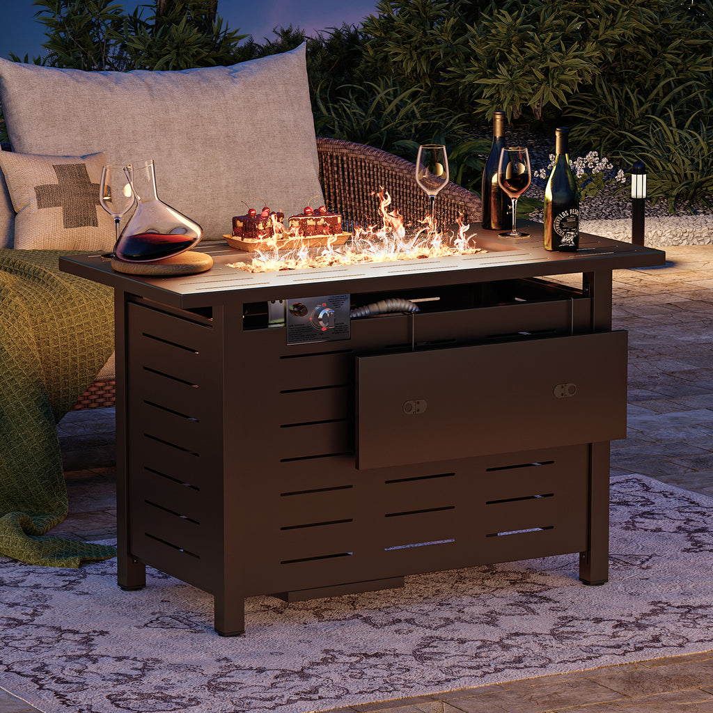 Clouddwell 40"/44" Black/Brown Propane Fire Pit Table, 50,000 BTU Outdoor Gas Firepit with Lava Rocks, Removable Lid & Waterproof Cover for Patio