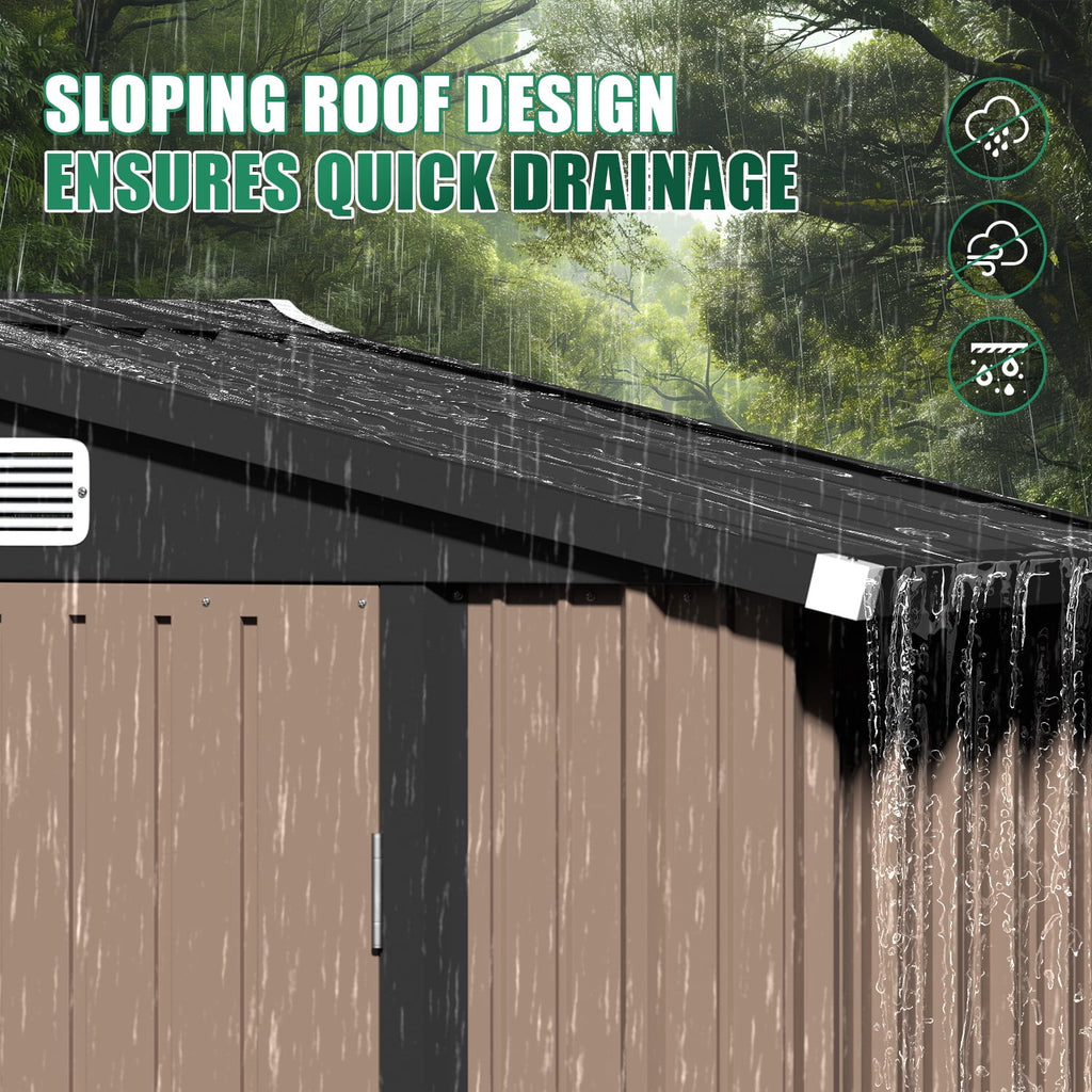 Clouddwell 7.5x5 ft. Outdoor Storage Shed with Base, Brown Metal Garden Shed with Double Lockable Doors for Backyard, Patio
