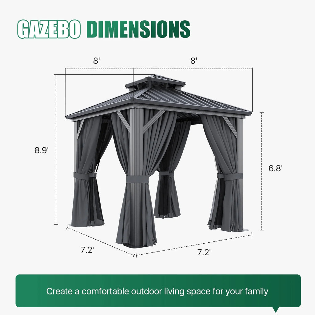Clouddwell 8' x 8' Gazebo for Patio, Gazebo Pergola with Sloped Roof, Large Wall-Mounted Heavy Duty Awnings, for Deck, Patio and Backyard