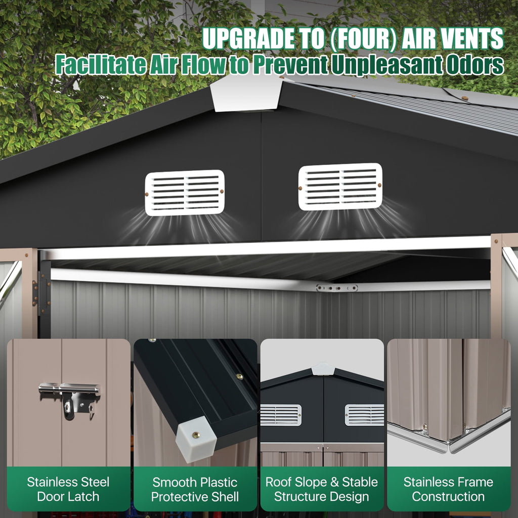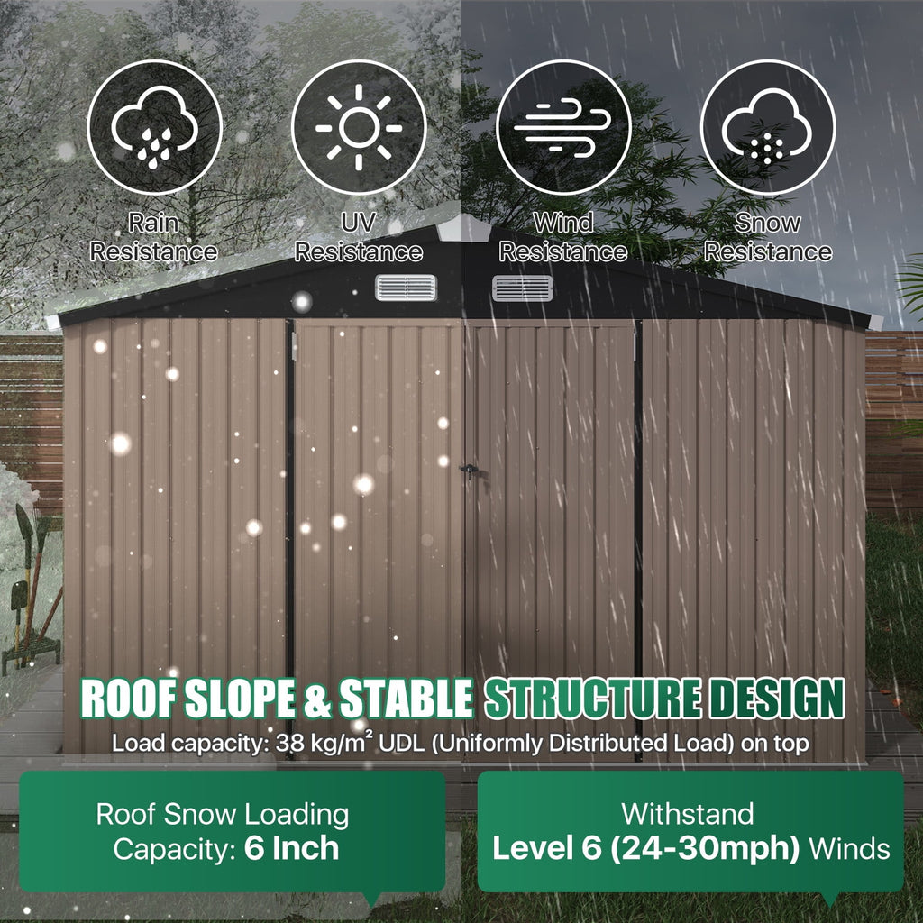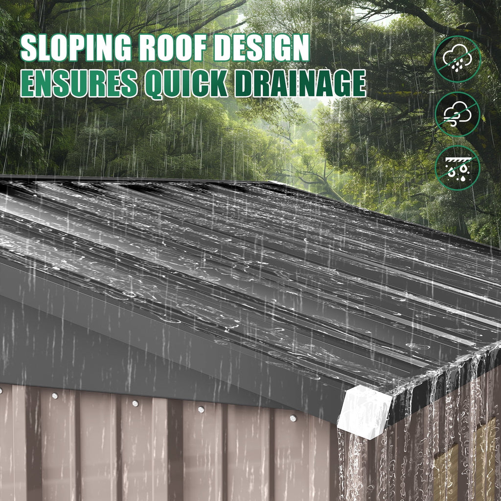 Clouddwell 9.5x7.5ft Galvanized Steel Storage Shed with Floor & Double Doors - Brown