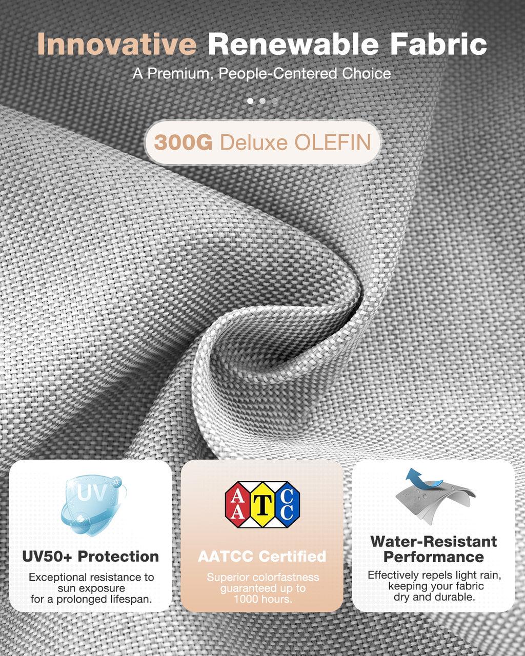 【Premium Materials That Last】The patio sofa features 300G Olefin cushions (UPF 63+) that are soft, durable, colorfast, and easy to clean. The included waterproof cover protects the set from rain, sun, and dust. Designed to maintain its look and comfort for up to 10 years, keeping your outdoor sectional furniture pristine and reliable.