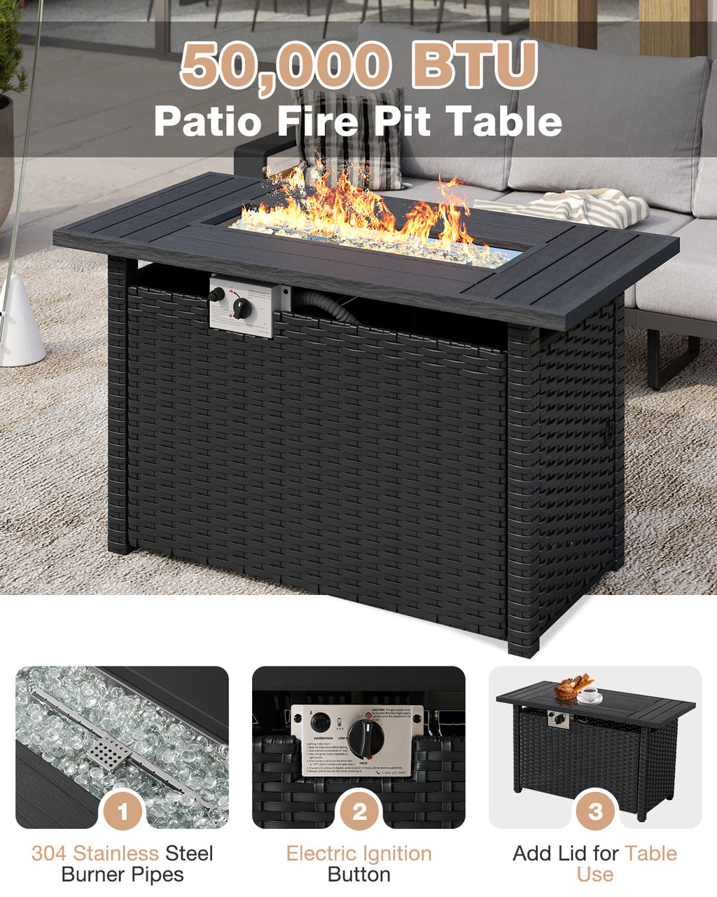 【Modern Wood-Texture】Crafted with high-definition HDPS panels, the side boards and tabletop feature refined, true-to-wood textures with a sleek, modern finish. They combine natural warmth with outstanding durability—perfect for elevating any garden, patio, or backyard space.