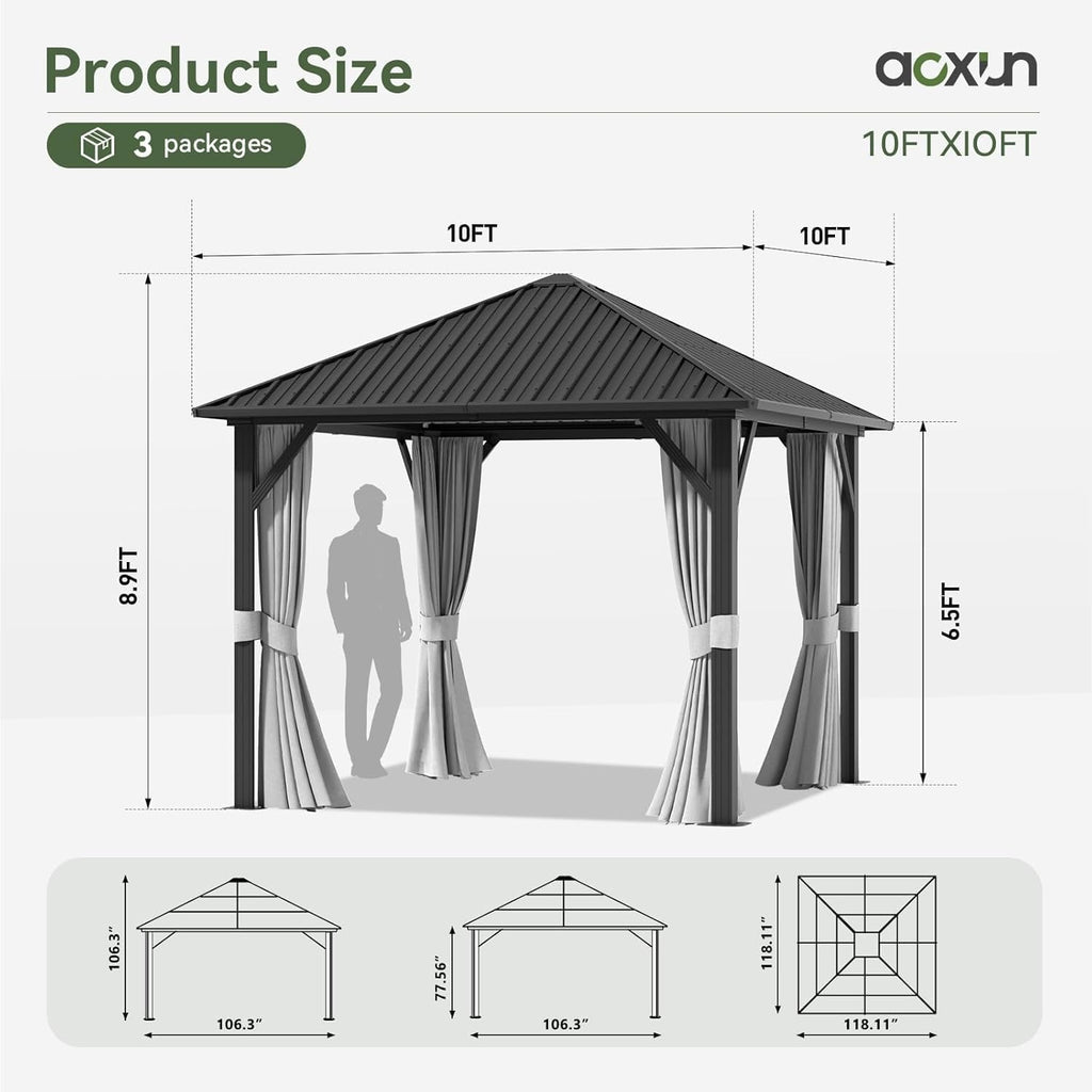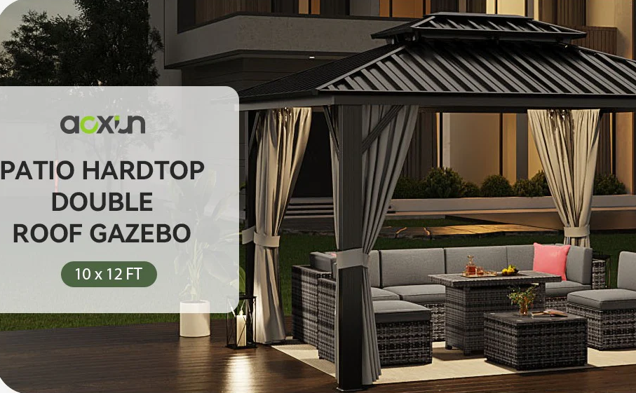 Elevate your outdoor space with the Aoxun Hardtop Gazebo. Combining exceptional durability with elegant design, it’s the perfect setting for relaxation, entertaining, or enjoying nature's beauty.