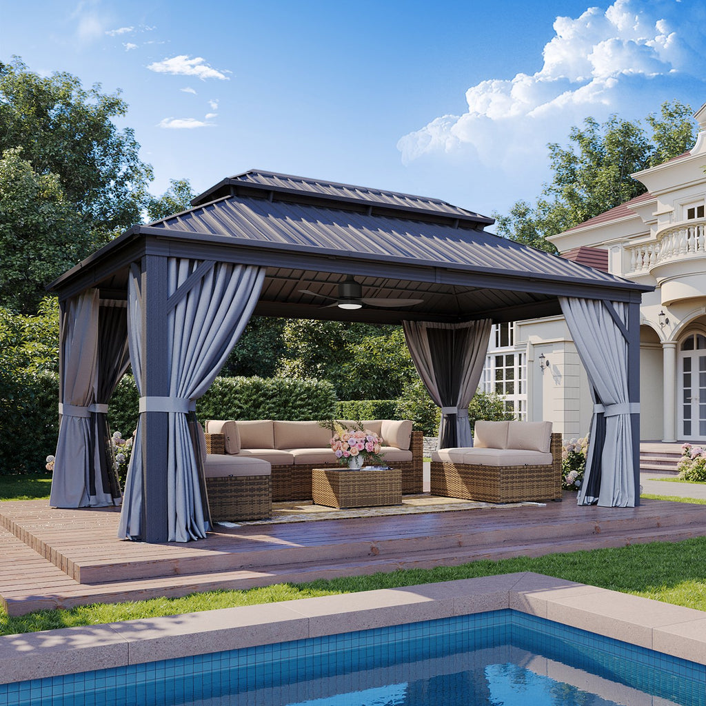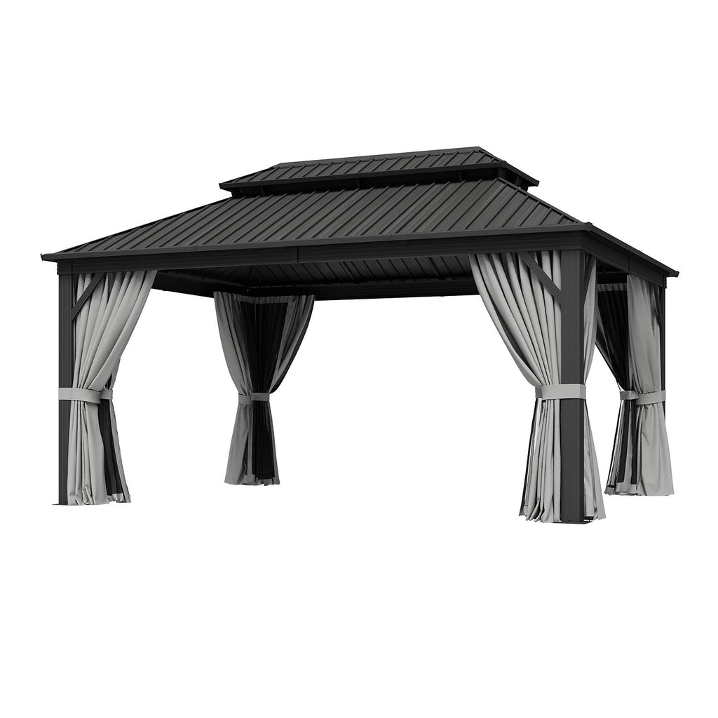 Sumnthink 12'x16' Hardtop Gazebo, Outdoor Steel Double Galvanized Roof Canopy, Aluminum Frame Permanent Pavilion Metal Gazebo with Netting and Curtains, for Patios, Gardens, Lawns