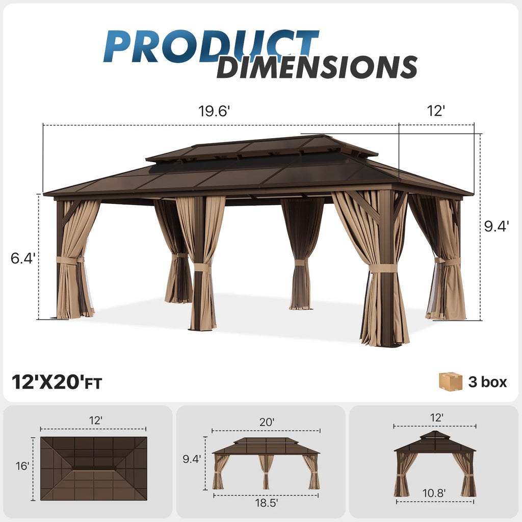 - 【EFFORTLESS ASSEMBLY & RELIABLE SUPPORT】 Includes all necessary hardware, step-by-step instructions, and a detailed installation video. Assembly typically takes 5 hours with 3–4 people. Ideal for gardens, hot tub areas, or patios, this gazebo combines functionality with style.