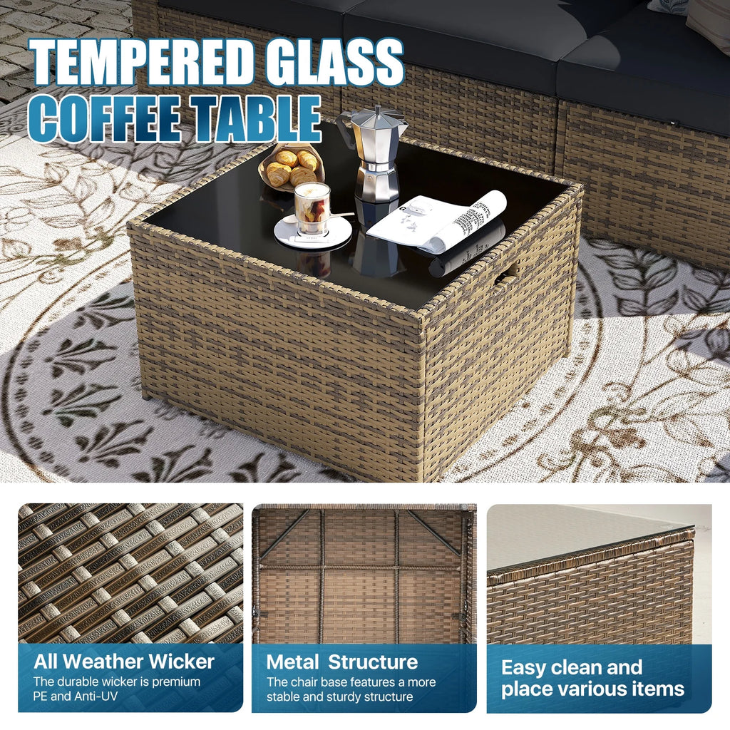 Sunmthink Patio Furniture Sets, 11-Piece Outdoor Patio Furniture with Thick Cushions, Wicker Outdoor Conversation Set and Waterproof Cover for Backyard, Poolside, Garden